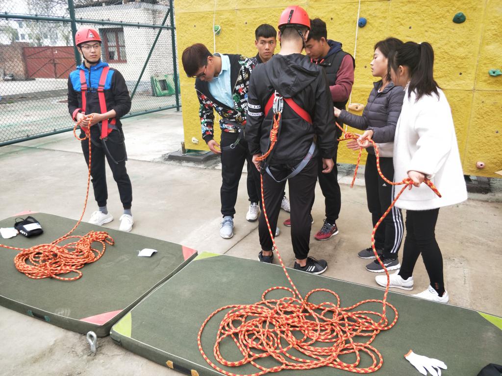 为了实现拓展体育课程项目多样化的重要举措。体育系积极推进教师技术技能多样性提升,支持师资队伍培训。在2018年在大学体育课程中引进拓展与攀岩课程,是大学体育特色课程重点培育项目。课程主要教学内容有:拓展训练的基础及相关理论、拓展训练项目的实践操作(高空项目、团队合作项目、沟通项目、个人突破项目)、分享感受、反思问题、总结经验、实践应用等及应急安全救援,红十字急救。