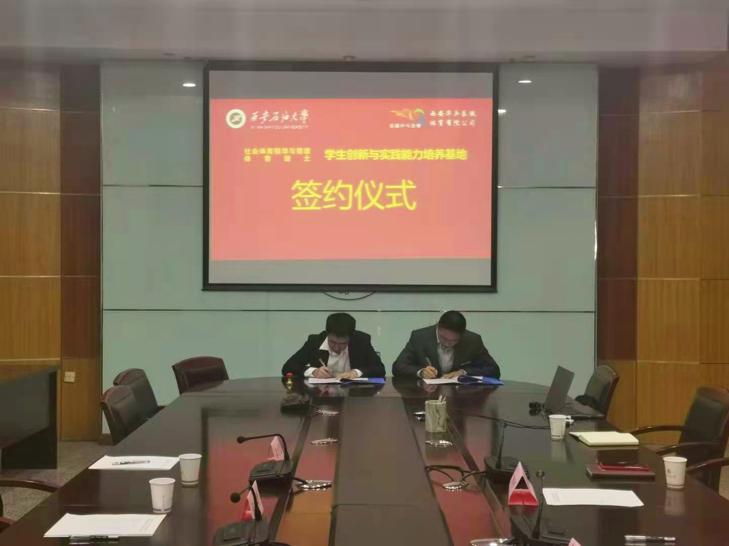 2021年4月27日上午,体育系与西安华乒乐旋体育有限公司建立学生创新与实践能力培养基地签约仪式在雁塔校区第四会议室举行,乐旋集团人事总监张小娇、西安乐旋连锁总经理徐小松、体育系党总支书记倪振文、系主任李寿邦以及系办公室、教学办、学管办负责人参加了签约仪式。