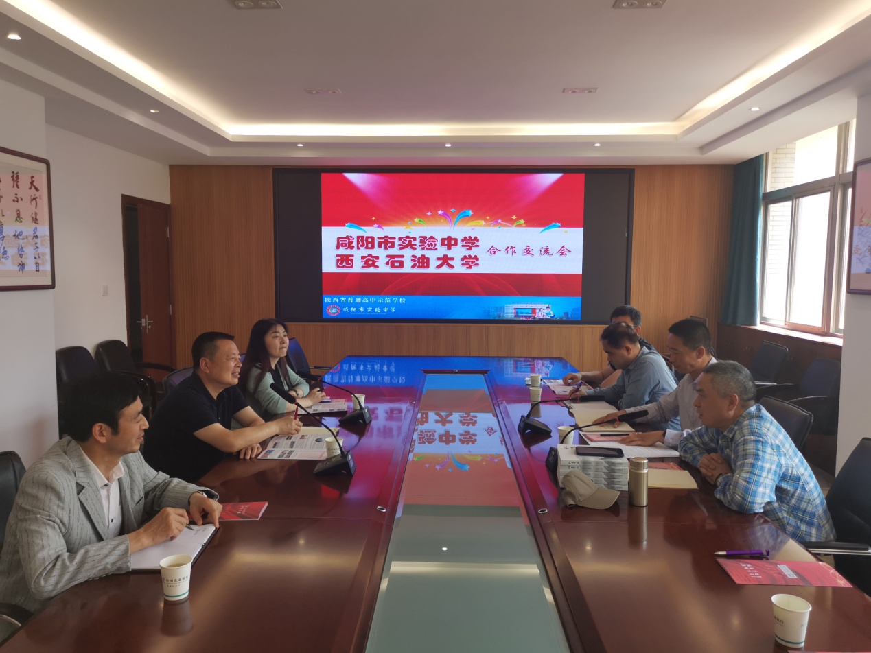 一行的来访表示热烈的欢迎和衷心的感谢,并详细介绍了咸阳实验中学的发展历程、办学特色和教学成果,咸阳市实验中学是咸阳市教育局直属的重点中学,全校共有教职工480余名,学生6000余人,目前以高中部为主,每年高考一本上线率都能达到90%以上。韩校长表示,希望两校以后能够保持常态化的对接与合作,除招生宣传外,还能够在学生生涯规划、研学活动、心理辅导、教师培训等方面进行进一步的合作,同时欢迎百合会