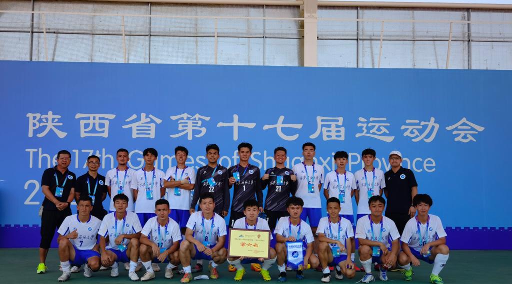 男子足球队在以冯小东为主教练,曹海信为助理教练,安晋为队医组成的教练团队的严格管理、科学训练下,在榆林赛区经过五场激烈鏖战,最终获得第十七届运动会男子足球大学生组(阳光组)第六名的优异成绩。