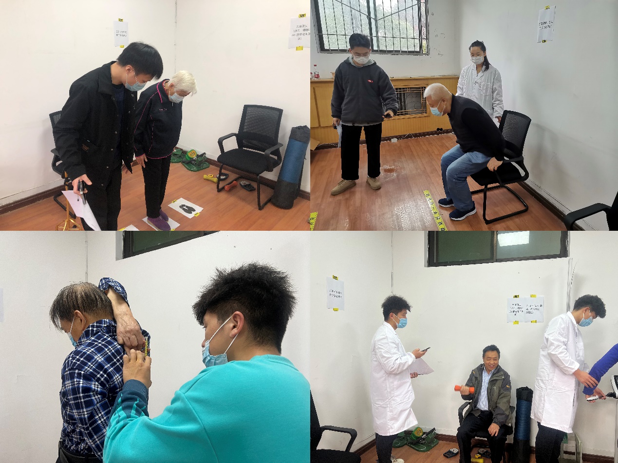肌少证课题组成员对广大教职工进行了肌少症健康知识宣讲,提高老年人对肌少症的重视程度;随后对老年人进行了关于身体成分(包括身高、体重、身体质量指数、蛋白质含量、无机盐含量、脂肪含量、肌肉含量)、肌肉力量(包括握力、上肢力量、下肢力量)和身体功能(包括平衡、灵敏、柔韧)等方面的测量,使老年人更加了解自己的身体状况。