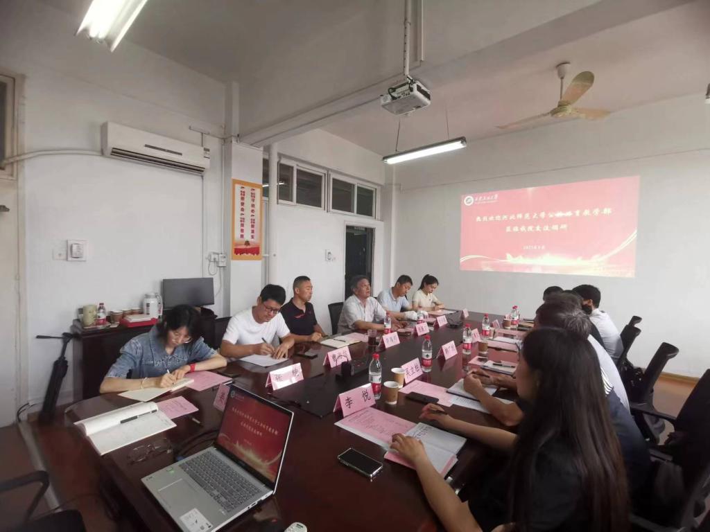 的具体情况,他表示希望通过交流,向河北师范大学吸取宝贵的教学和管理经验,也希望双方今后能够建立更加深入的合作关系。随后的交流中,各位参会老师围绕公共体育教学体育课程和课程思政、群体竞训工作、促进学生体质健康、人才引进与晋升等方面做了热烈而深入的探讨。
