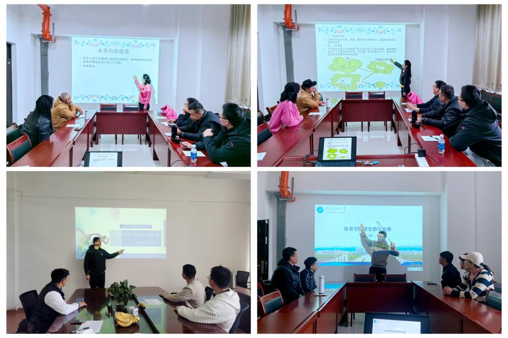 教师全员参与,各教研小组分组别进行组织开展,呈现了多场次精彩纷呈的教学比拼活动。本次课堂教学竞赛以教学方法创新、教学内容设计、教学案例展示等形式展开,内容涵盖大学体育各专项(足球、篮球、排球、乒乓球、羽毛球、网球、武术、健美操、休闲体育等)项目,以及社会体育指导与管理专业理论课程(运动训练学、运动生理学、体育保健学等)内容。教学竞赛中,参赛教师通过精心准备的教学案例和生动形象的教学示范,向评委和观众展现了各自不同的教学水平和教学风采,充分展示了每位教师的教学设计能力和教学创新意识。
