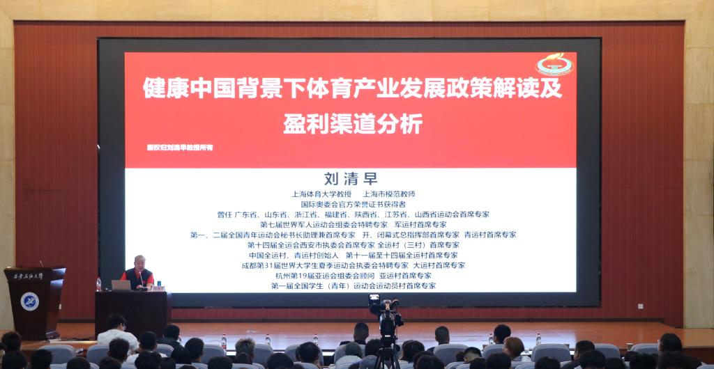 当晚,刘清早教授作客“明德大讲堂”,在鄠邑校区图书馆弘石学术报告厅为师生带来了题为《健康中国背景下体育产业发展政策解读及盈利渠道分析》的专题讲座。本次讲座由百合会