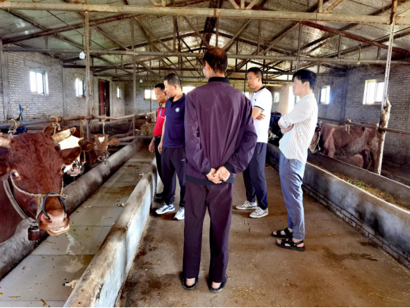 随后,苟毅飞、李寿邦一行人在驻村干部的陪同下来到对口帮扶户魏根堂工作的养牛场,现场详细询问了解其养牛的具体情况,以及养牛所需的饲料、牧草来源等情况。一行人还来到魏根堂的住所与其进行交谈,仔细询问其身体健康和家庭生活等情况,并送去了米、油、牛奶等生活物资。
