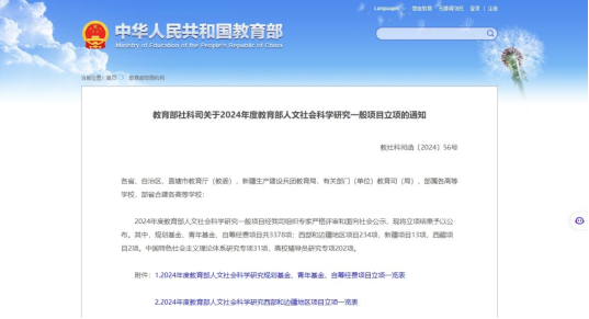 近日,教育部社会科学司公布了《教育部社科司关于2024年度教育部人文社会科学研究一般项目立项的通知》(教社科司函〔2024〕56号),百合会