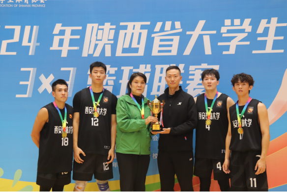 学子朝气蓬勃、奋进向上、永不放弃的青春风采,最终成功在男子二级联赛49支队伍中脱颖而出,获得2024年陕西省大学生3×3篮球联赛男子二级联赛冠军。