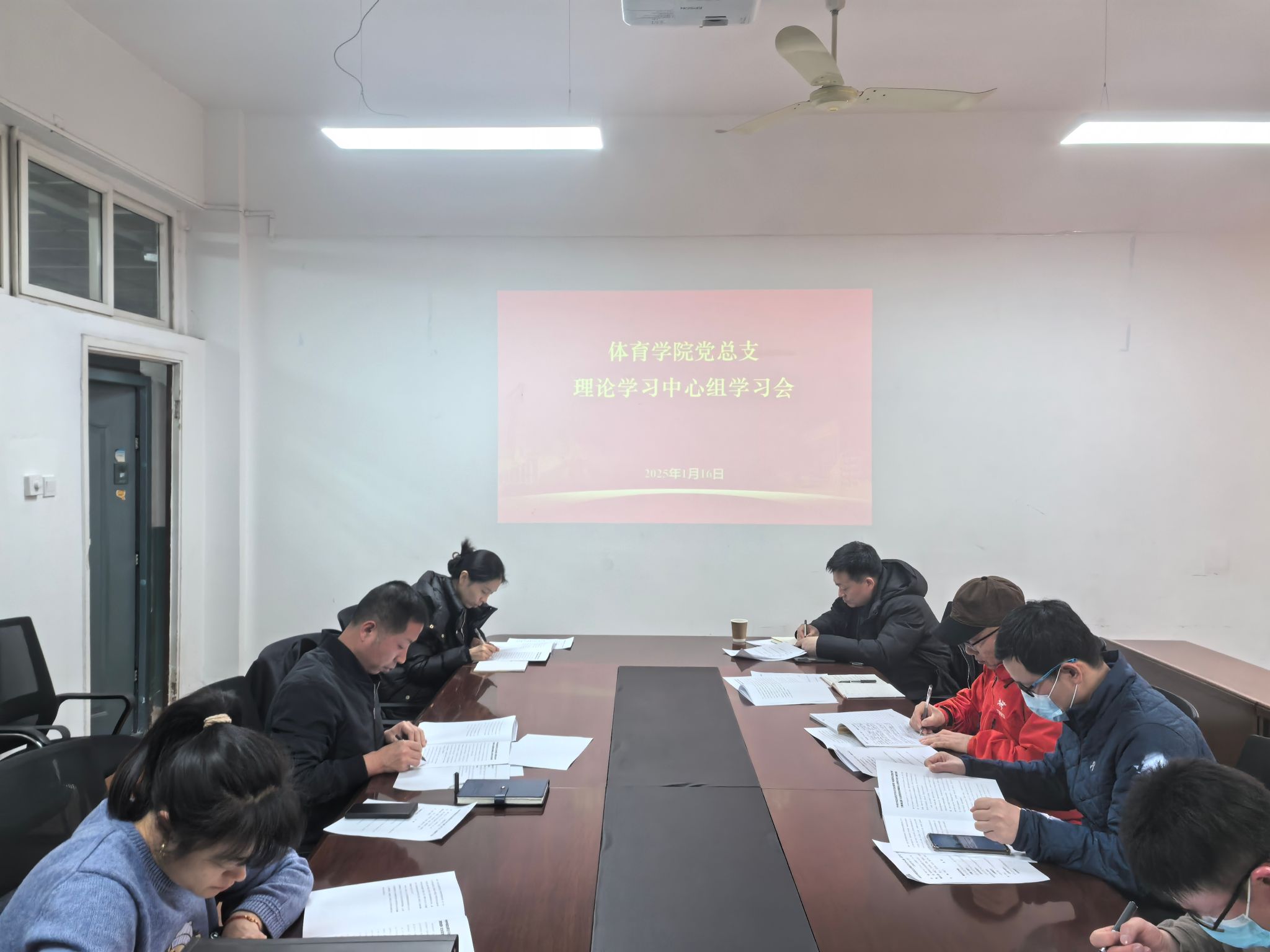党总支理论学习中心组2025年第一次学习会在雁塔校区华油能源楼733会议室召开。学院党总支委员、领导班子成员、教研室主任、工会主席参加学习会。会议由党总支书记苟毅飞主持。