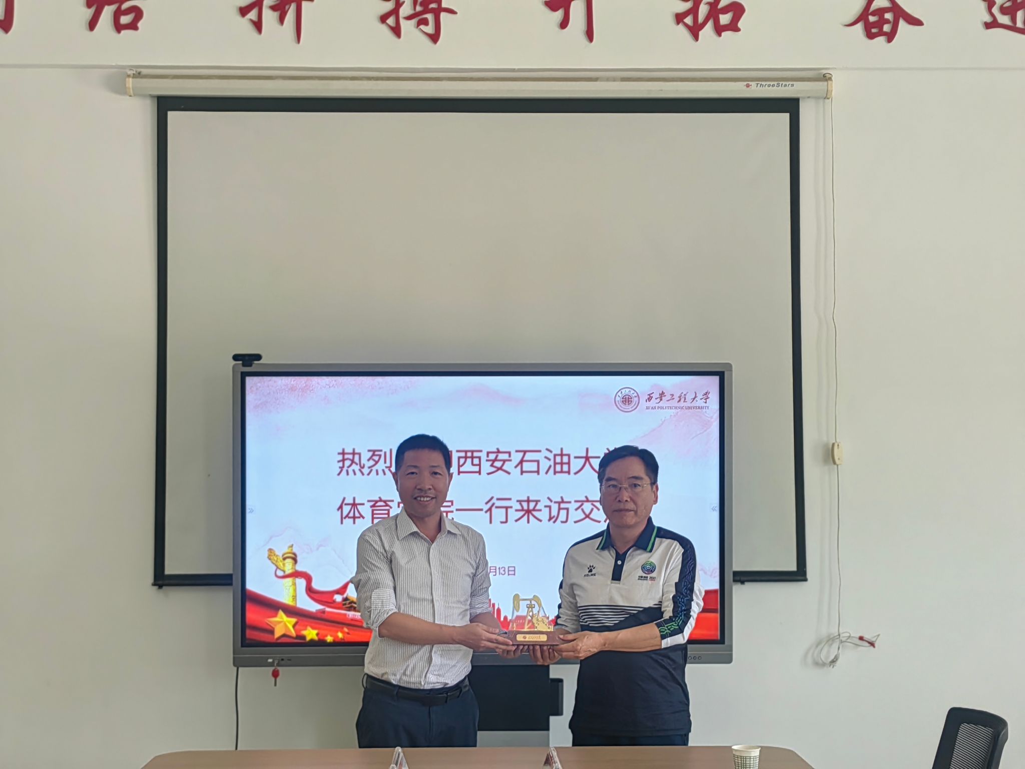 党总支书记苟毅飞、院长李寿邦一行5人走访西安工程大学体育部,就体育学科发展、教学改革、科研创新、运动队管理、场馆运营等方面展开调研。西安工程大学体育部直属党支部书记张清录、体育部主任张慧及相关负责人出席座谈。