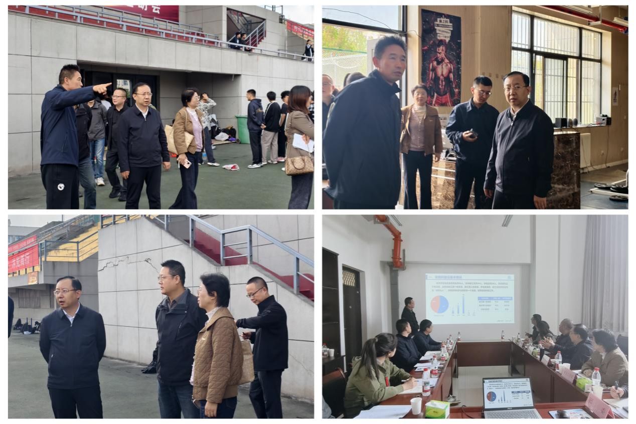 调研伊始,种宇宏一行实地调研走访了鄠邑校区东体育场田径场地、健身房、瑜伽教室等教学场所。随后在东体育场208会议室召开了调研座谈会。会上,刘小波、李寿邦分别从师资队伍、教学工作、党建工作、学生工作、团学工作等方面进行了工作汇报。