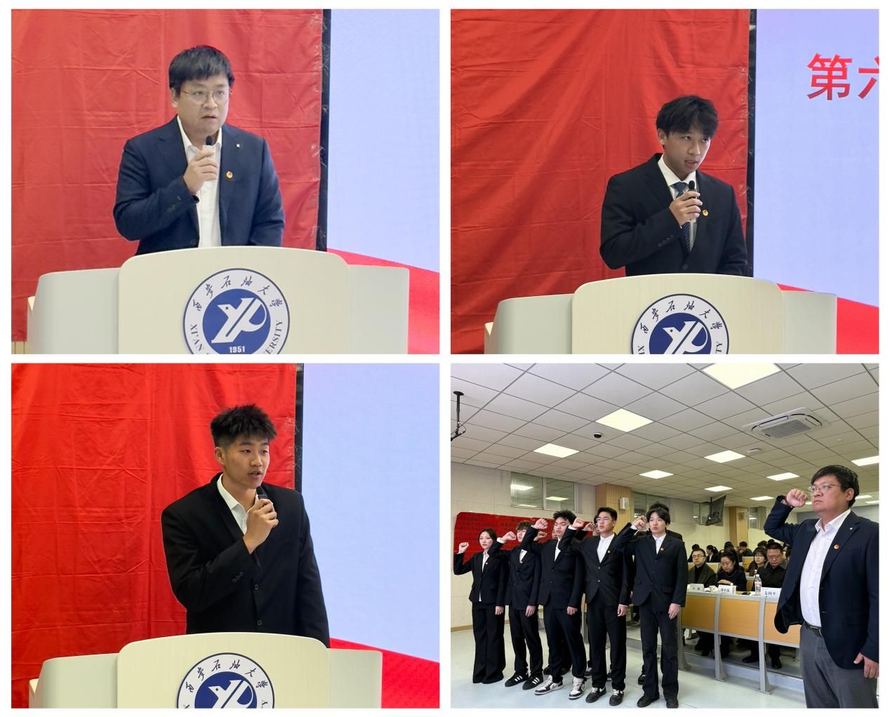 新一届团委委员和学生会委员会委员,全体新当选委员在姜国平老师的带领下面向团旗进行了庄严宣誓。