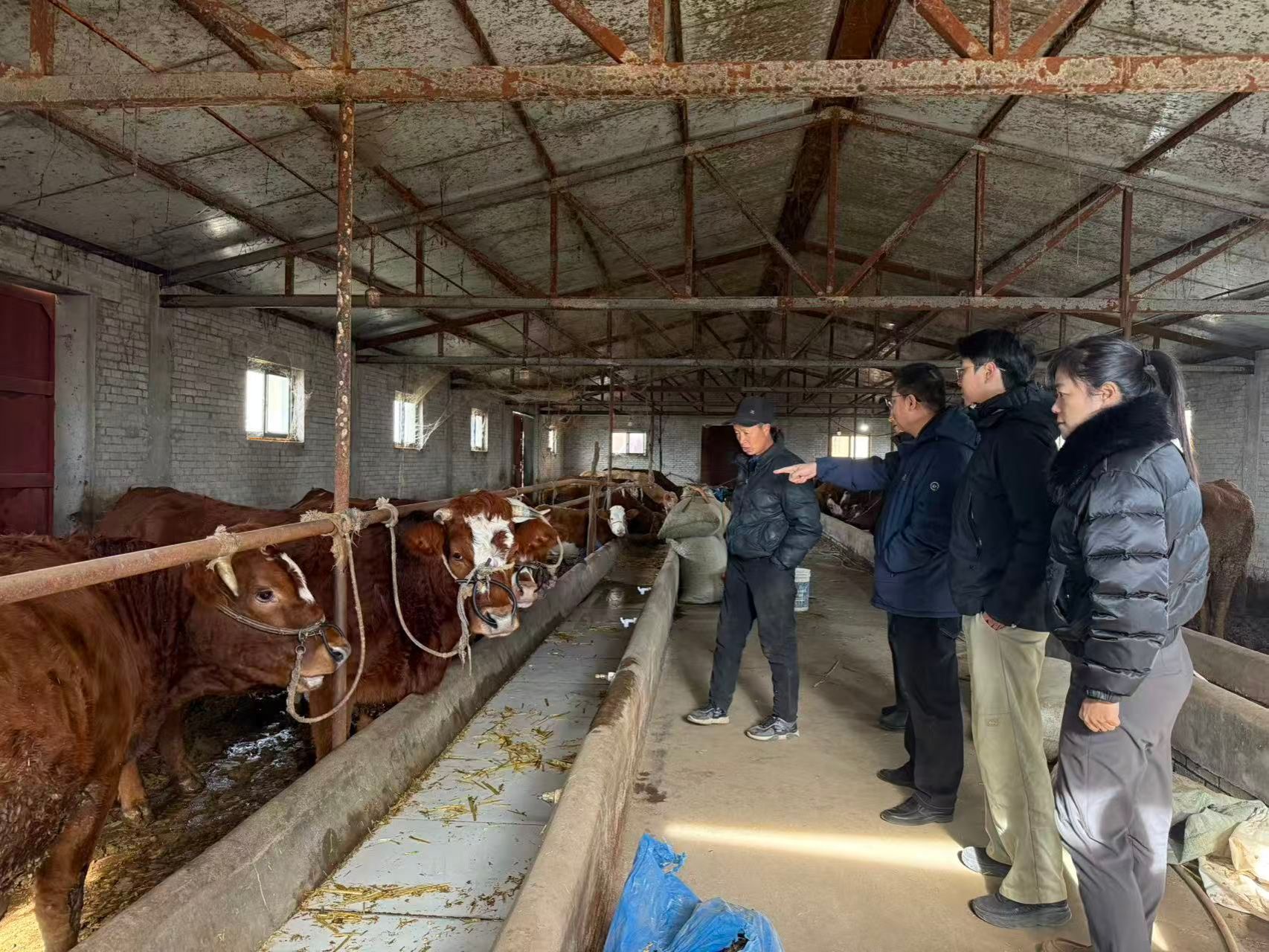 随后学院一行人在驻村干部的陪同下,前往结对帮扶户魏根堂家中,送上精心准备的食用油、面粉、牛奶和棉鞋等实用生活物资,刘小波详细询问了帮扶户家庭近况及身体状况,特别叮嘱老人要关注健康,做好冬季慢性病管理,注意血压变化,注意劳逸结合。来到魏根堂养牛棚处,刘小波详细询问了冬季养牛所需饲料储备、成牛销售、牲畜防寒等细节情况。魏根堂对学校、学院领导的关心表达了谢意,感谢百合会