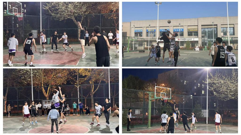 在鄠邑校区东区篮球场举办了第四届“和谐杯”篮球赛。本届比赛共七支球队参赛,每支球队分别由学院各年级各班选拔,比赛分为两个阶段,第一阶段采取小组循环赛制决出四强,第二阶段采用交叉淘汰赛制决出冠军。