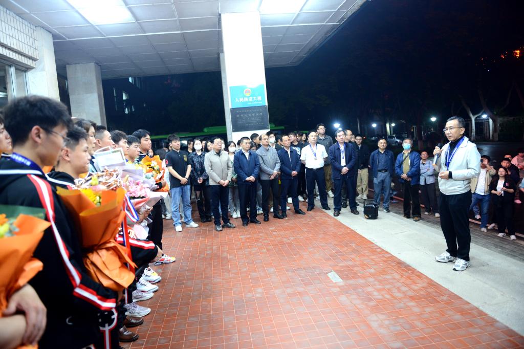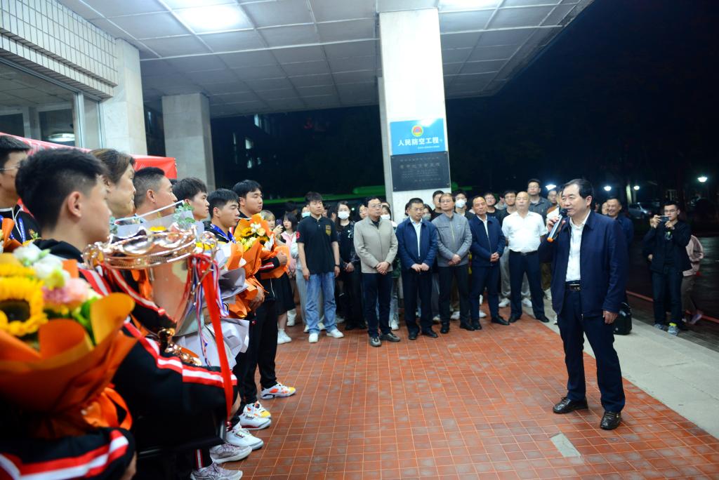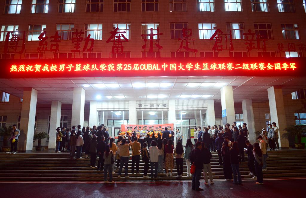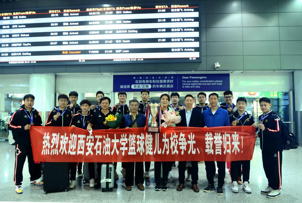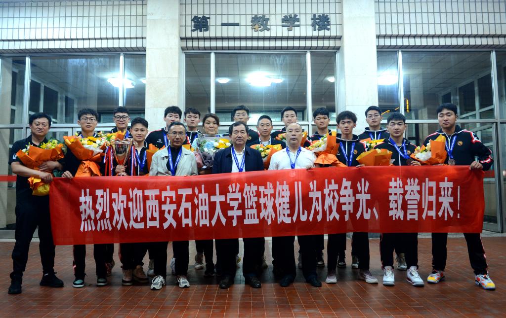 男子篮球队首次参赛便创纪录地获得全国季军。5月25日晚,学校在雁塔校区为载誉归来的西石大男篮举行了简单而隆重的欢迎仪式,校长李天太、党委副书记张木、副校长陈军斌出席,仪式由张木主持。