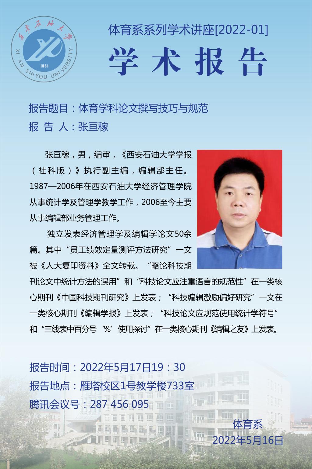 上一条:体育系系列学术讲座:学科建设和研究生质量提升系列论坛——运动人体科学专题 下一条:体育系系列学术讲座:发扬体育精神,共筑体育强国