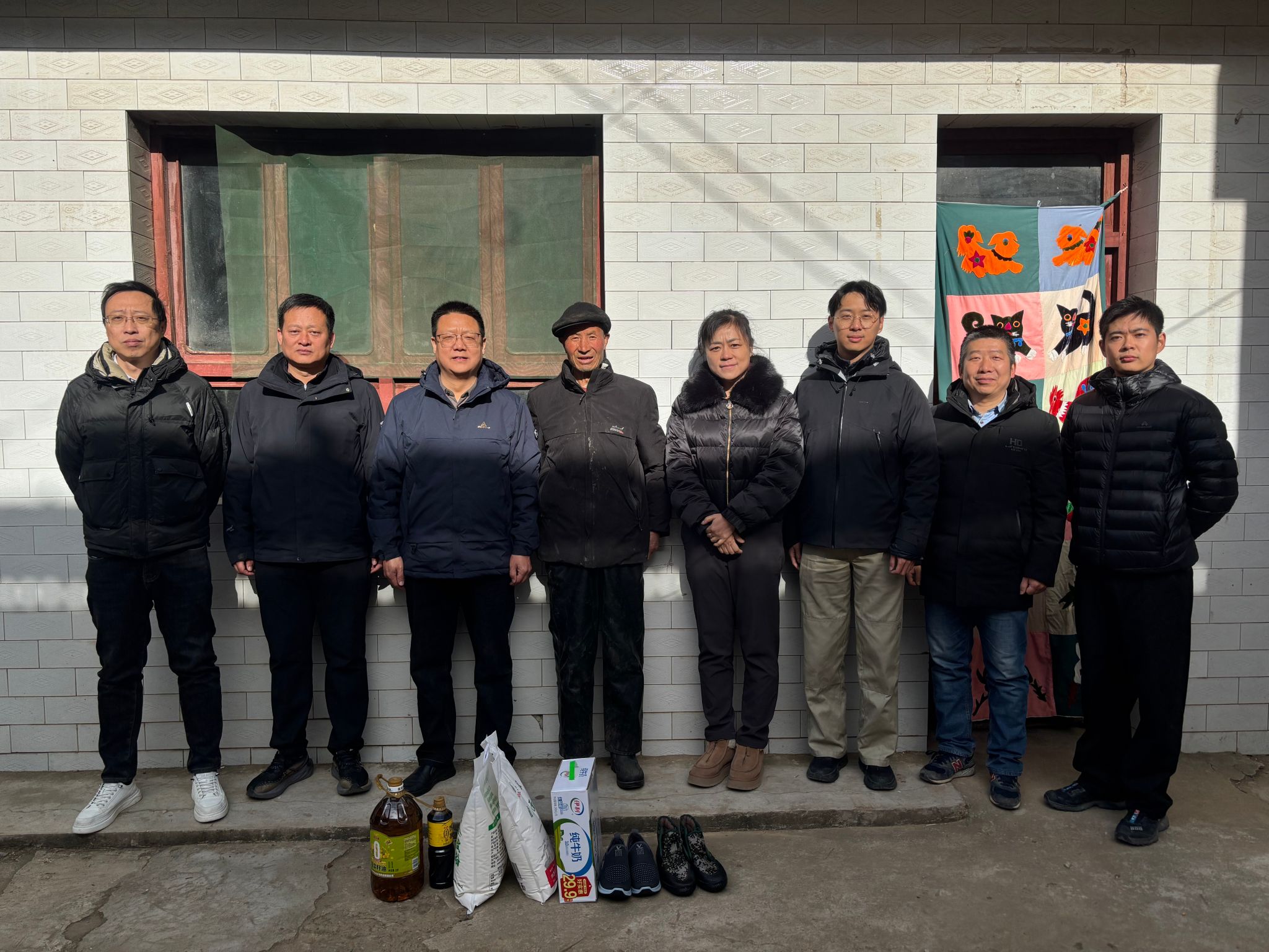 随后学院一行人在驻村干部的陪同下,前往结对帮扶户魏根堂家中,送上精心准备的食用油、面粉、牛奶和棉鞋等实用生活物资,刘小波详细询问了帮扶户家庭近况及身体状况,特别叮嘱老人要关注健康,做好冬季慢性病管理,注意血压变化,注意劳逸结合。来到魏根堂养牛棚处,刘小波详细询问了冬季养牛所需饲料储备、成牛销售、牲畜防寒等细节情况。魏根堂对学校、学院领导的关心表达了谢意,感谢百合会
