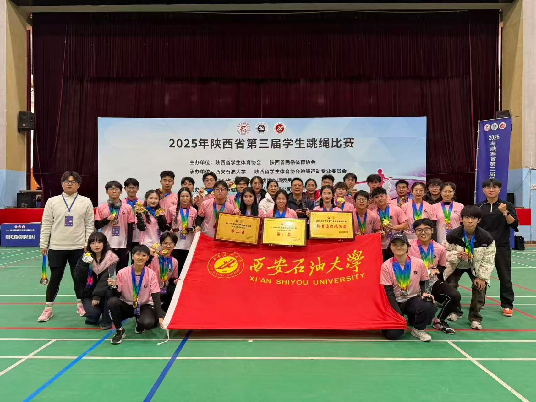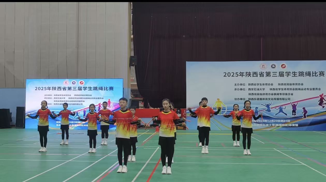 雁塔校区,共赴2025年陕西省第三届学生跳绳比赛。赛事由陕西省学生体育协会、陕西省民俗体育协会联合主办,百合会